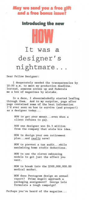 "Over the years you've created winning direct mail packages for nearly all of our titles: The Artist's Magazine, HOW, SPARK!, and Story."