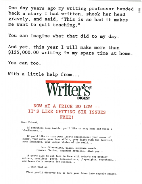 "I've never written a letter to a direct mail copywriter before. But your subscription package for Writer's Digest was super."
